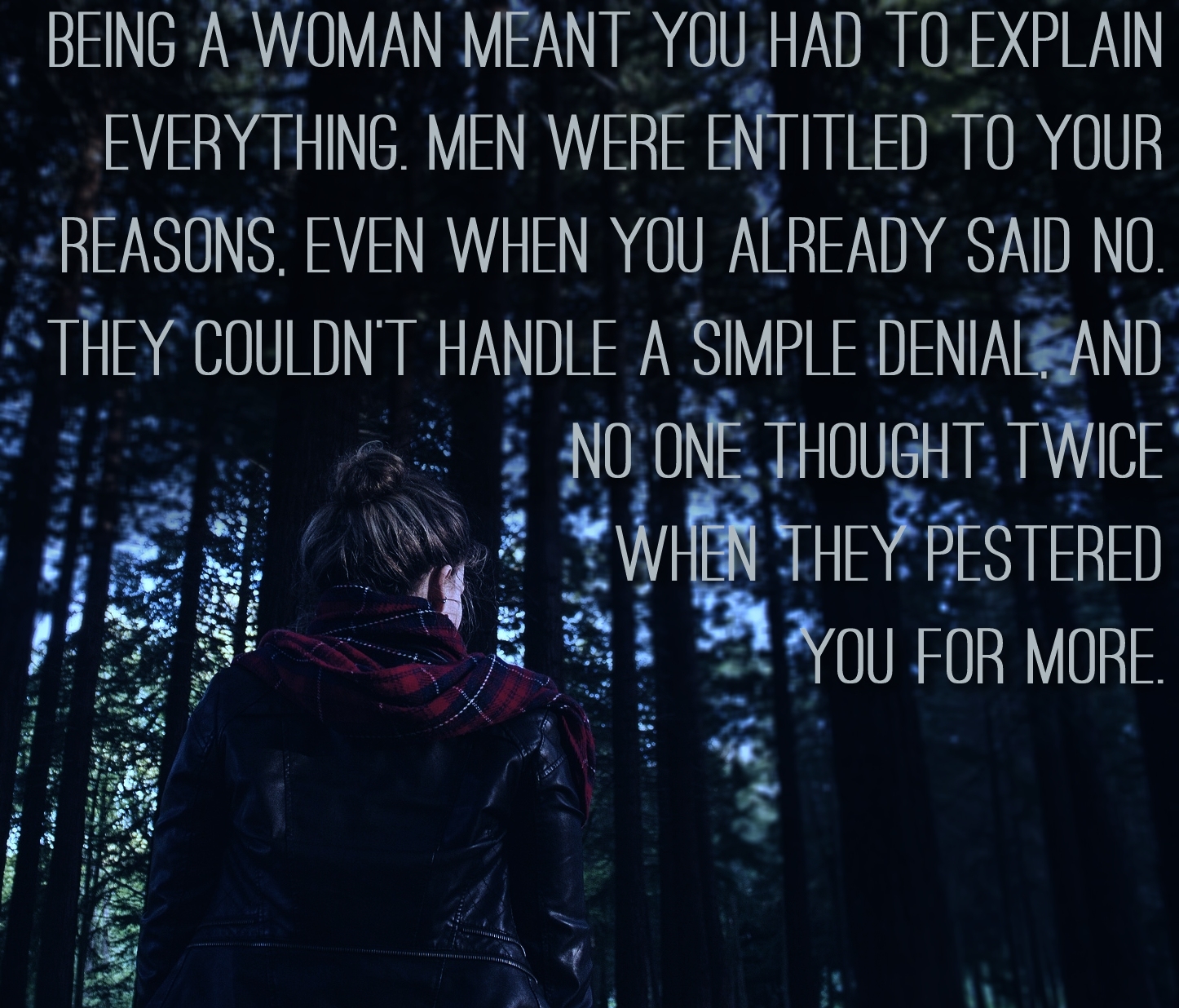 The book idea didn’t actually start off with a stalker. I was looking through images (which I do all the time) and found an image of an abandoned tent in the woods. That got me thinking about who was in it, where they went and why. Laura doesn’t pack herself a tent, but that set-up turned into her little pile of items she left at the trailhead, things to make it look like she was gone for good. Then I just had to figure out what she was running from.