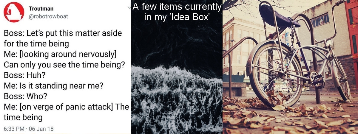 My brain is pretty good at generating ‘what ifs’ from all types of prompts, images, texts, tropes, horses... I never tell it no; even if an idea isn’t something I can use at the moment, I have a folder on my computer called ‘Idea Box,’ and I will file away that item for later use.