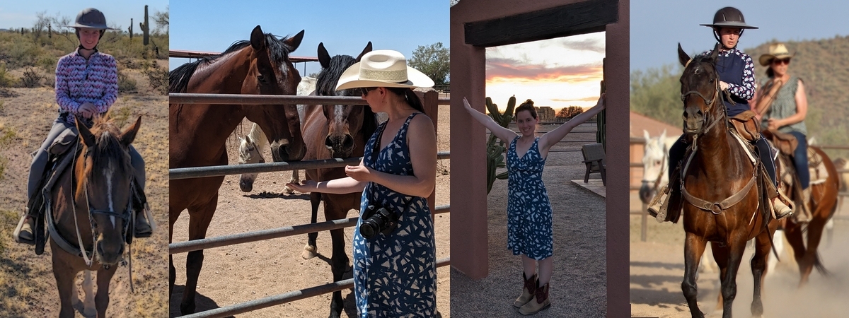 Twin Springs Ranch is entirely made up, but there are many places like it. This past summer I travelled to Arizona for a stay at a dude ranch to surround myself with the atmosphere while I worked on edits for A Song for the Cowgirl (out this week!). The ranch I booked is significantly bigger than Twin Springs, but at any size, the magical moments remain the same. My room was set along the horse paddocks, so each morning I opened my shutters to a herd of horses hanging around and just being horses. I went on trail rides, ate in the very western-appointed dining room, and hung out absorbing the ranch atmosphere. It was lovely, and I definitely snagged some tiny moments to add into the book to make Twin Springs even more real.